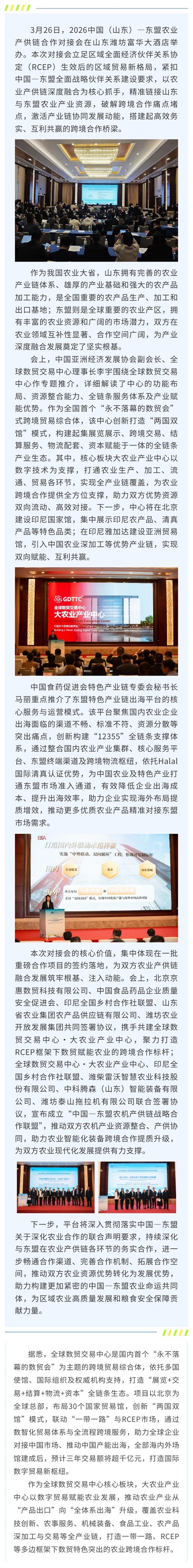 聚力RCEP机遇 共绘合作新篇 中国(山东)—东盟农业产供链合作对接会成功举办
