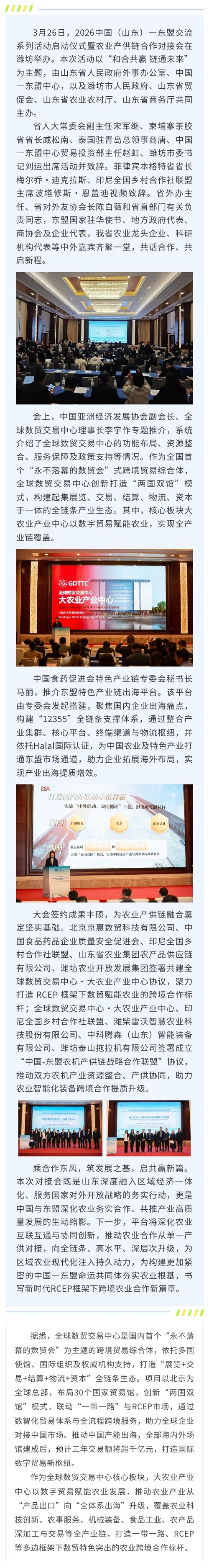 聚力RCEP机遇 共绘合作新篇 中国(山东)—东盟农业产供链合作对接会成功举办